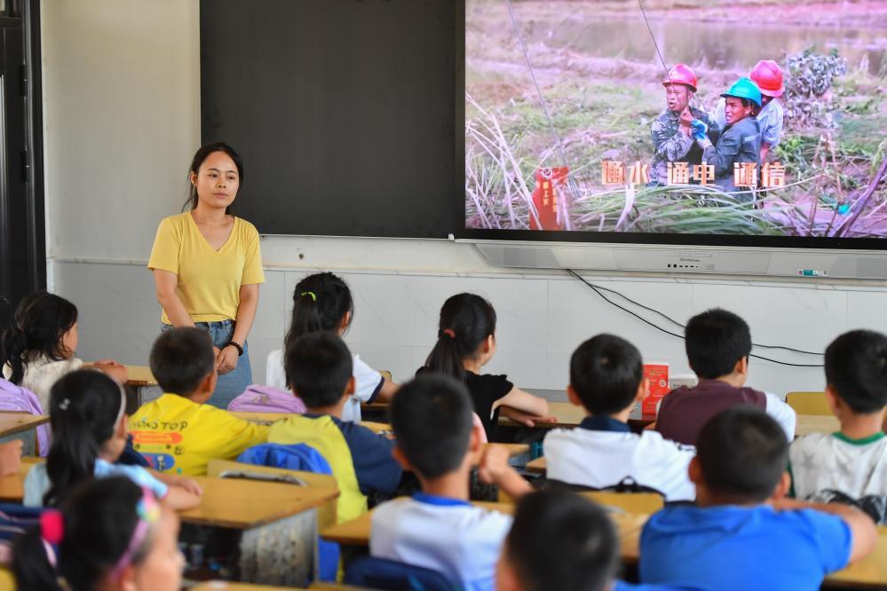 今年夏天,湖南華容縣等地遭受洪澇災(zāi)害。9月,華容縣一所學(xué)校,老師通過(guò)講述防災(zāi)救災(zāi)故事,引導(dǎo)孩子們知情、共情,汲取成長(zhǎng)的力量。