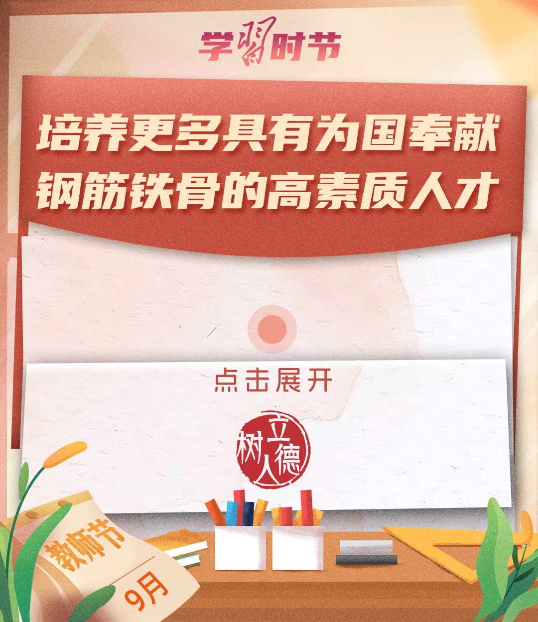 “百年大計,教育為本。教育大計,教師為本?!秉h的十八大以來,習(xí)近平總書記多次以書信形式向教師群體和教育工作者表達囑托與期望,諄諄話語,催人奮進。在第四十個教師節(jié)到來之際,讓我們一起重溫總書記的諄諄寄語!