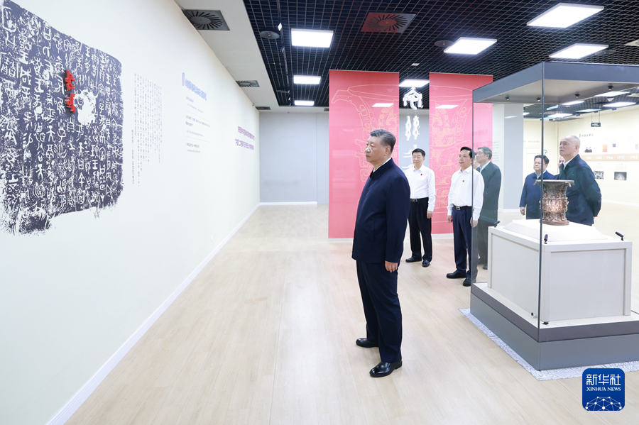 9月10日,中共中央總書記、國(guó)家主席、中央軍委主席習(xí)近平在前往甘肅考察途中,來到陜西省寶雞市參觀寶雞青銅器博物院。新華社記者 鞠鵬 攝