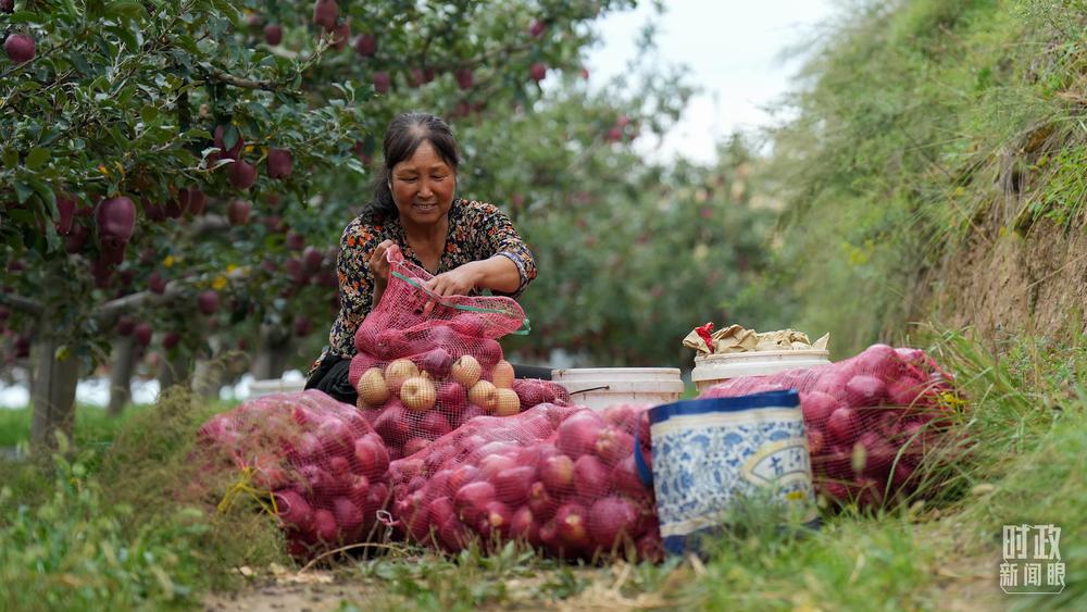△南山花牛蘋果基地在2023年帶動(dòng)9000多戶村民實(shí)現(xiàn)增收。(總臺(tái)國廣記者李晉拍攝)