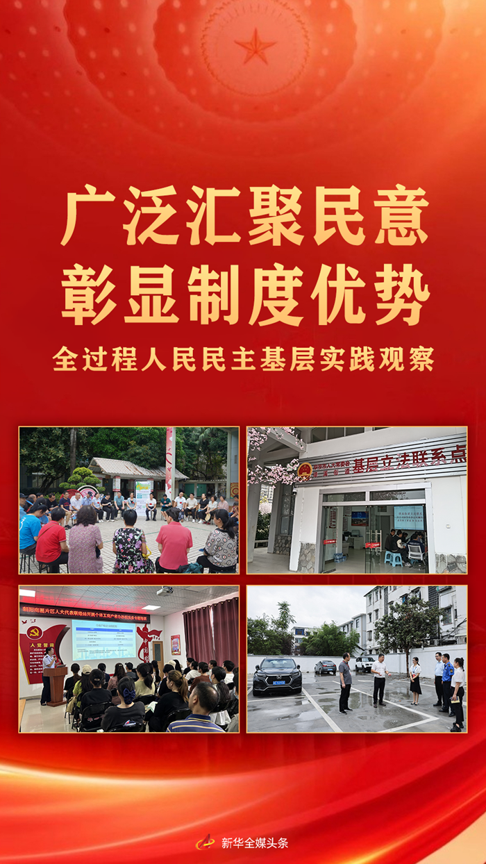 保證人民依法實行民主選舉、民主協(xié)商、民主決策、民主管理、民主監(jiān)督,發(fā)揮人民群眾積極性、主動性、創(chuàng)造性……在各地,生動鮮活的基層民主實踐,把黨的主張、國家意志、人民意愿緊密融合在一起,共同繪就全過程人民民主的動人圖景,彰顯了“中國之治”的制度優(yōu)勢。