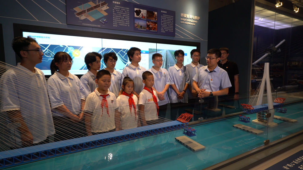 哈爾濱工業(yè)大學(xué)交通學(xué)院教師李順龍?jiān)谥袊鴺蛄翰┪镳^進(jìn)行課程思政與橋梁科普。新華社發(fā)(張潤 攝)