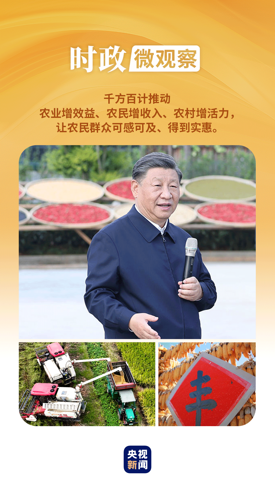 在第七個“中國農民豐收節(jié)”到來之際,習近平總書記代表黨中央,向全國廣大農民和工作在“三農”戰(zhàn)線上的同志們致以節(jié)日祝賀和誠摯問候,對于堅持不懈夯實農業(yè)基礎,推進鄉(xiāng)村全面振興提出殷切期望和要求——
