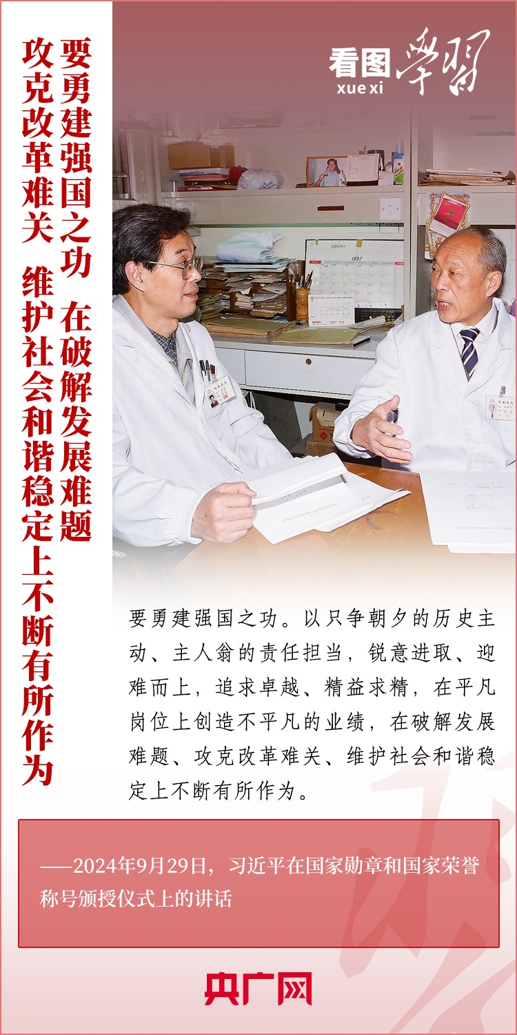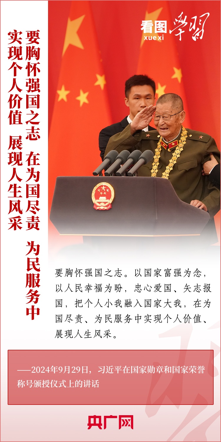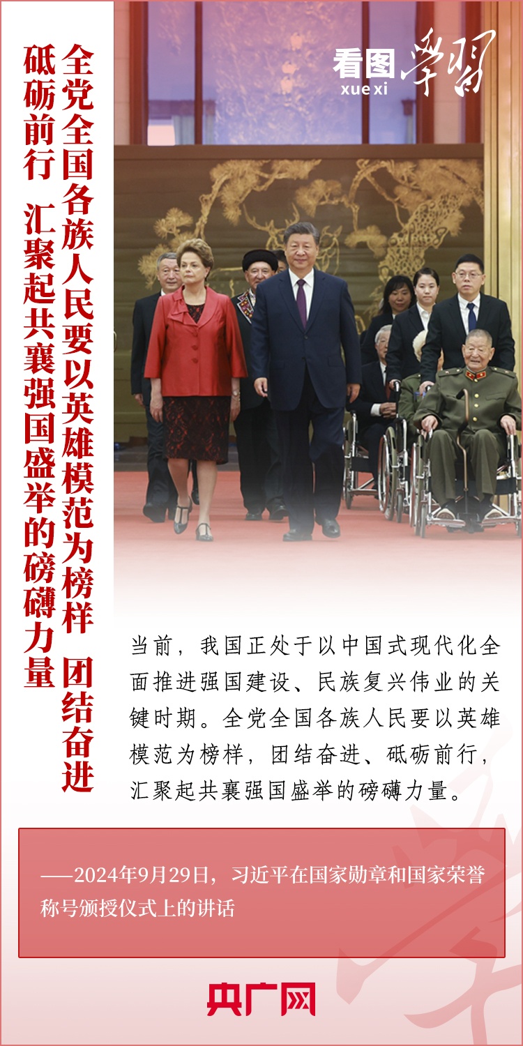 9月29日,中華人民共和國國家勛章和國家榮譽(yù)稱號頒授儀式在北京舉行,習(xí)近平總書記向國家勛章和國家榮譽(yù)稱號獲得者頒授勛章獎(jiǎng)?wù)虏l(fā)表重要講話??倳洀?qiáng)調(diào),全黨全國各族人民要以英雄模范為榜樣,團(tuán)結(jié)奮進(jìn)、砥礪前行,匯聚起共襄強(qiáng)國盛舉的磅礴力量。一起來學(xué)習(xí)!