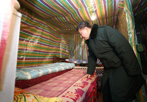 一天之內(nèi),橫跨兩省市,足跡覆蓋農(nóng)村、社區(qū)、學(xué)校等7處考察點,冒著嚴(yán)寒而往,沐著夜色而歸,只因“心里一直惦念著災(zāi)區(qū)的人民群眾”。