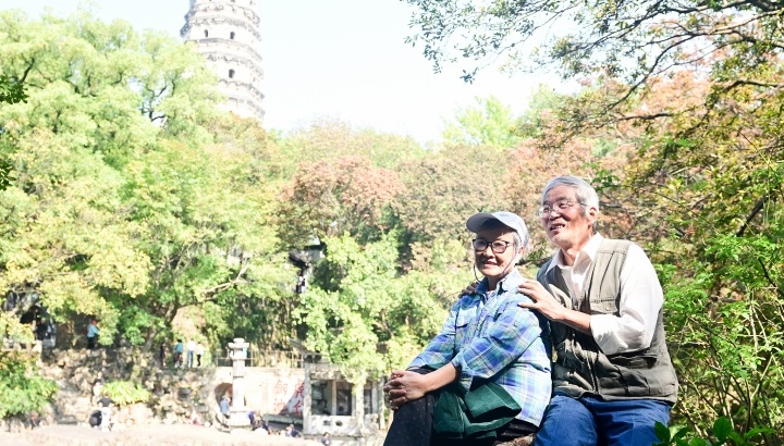 江蘇蘇州,老人們登虎丘山迎重陽