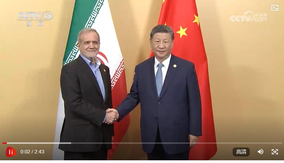 習(xí)近平祝賀并歡迎伊朗首次作為正式成員參加金磚國(guó)家領(lǐng)導(dǎo)人會(huì)晤,指出中方愿同伊方在金磚等多邊框架內(nèi)加強(qiáng)合作,進(jìn)一步提升全球南方的影響力和發(fā)言權(quán),推動(dòng)國(guó)際秩序朝著更加公正合理的方向發(fā)展。
