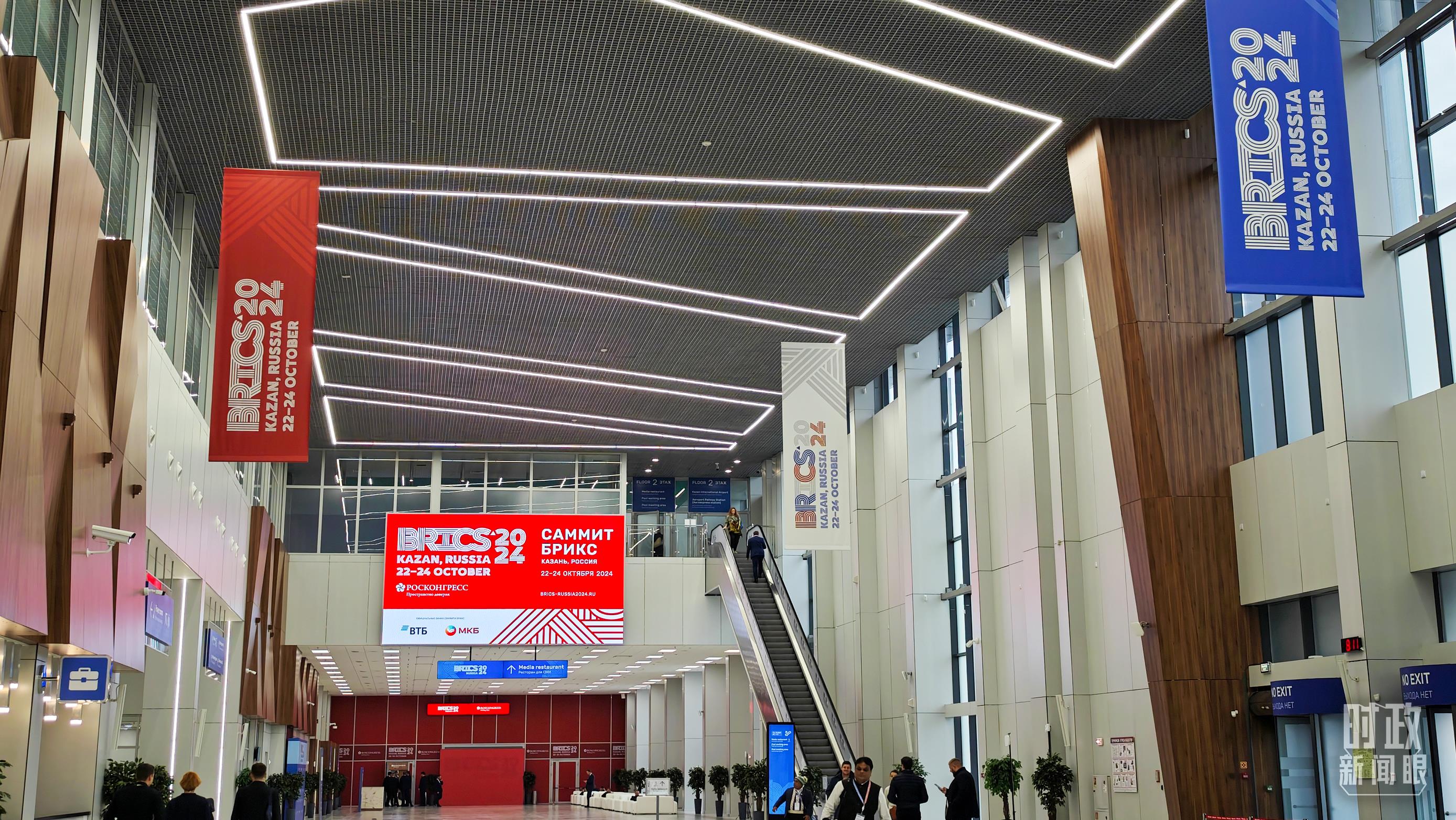 喀山會展中心內的峰會標志。(總臺央視記者鄂介甫拍攝)
