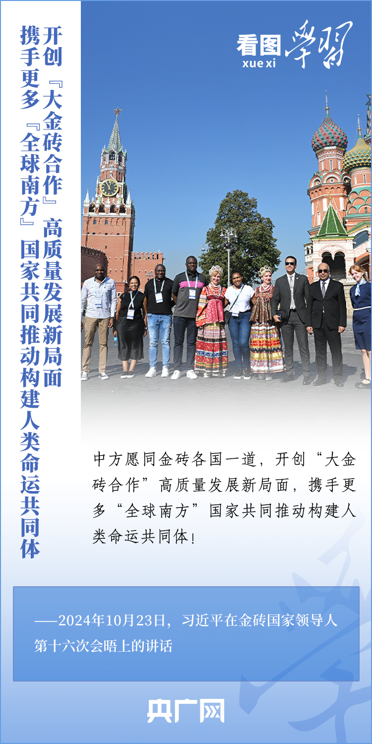 當?shù)貢r間10月23日,國家主席習近平在俄羅斯喀山出席金磚國家領(lǐng)導人第十六次會晤并發(fā)表重要講話。習主席深刻闡述推動“大金磚合作”高質(zhì)量發(fā)展的中國主張,就金磚大家庭發(fā)展合作提出五點務實舉措,表達了中方愿同金磚各國一道,攜手更多“全球南方”國家共同推動構(gòu)建人類命運共同體的真誠愿望。一起來學習!