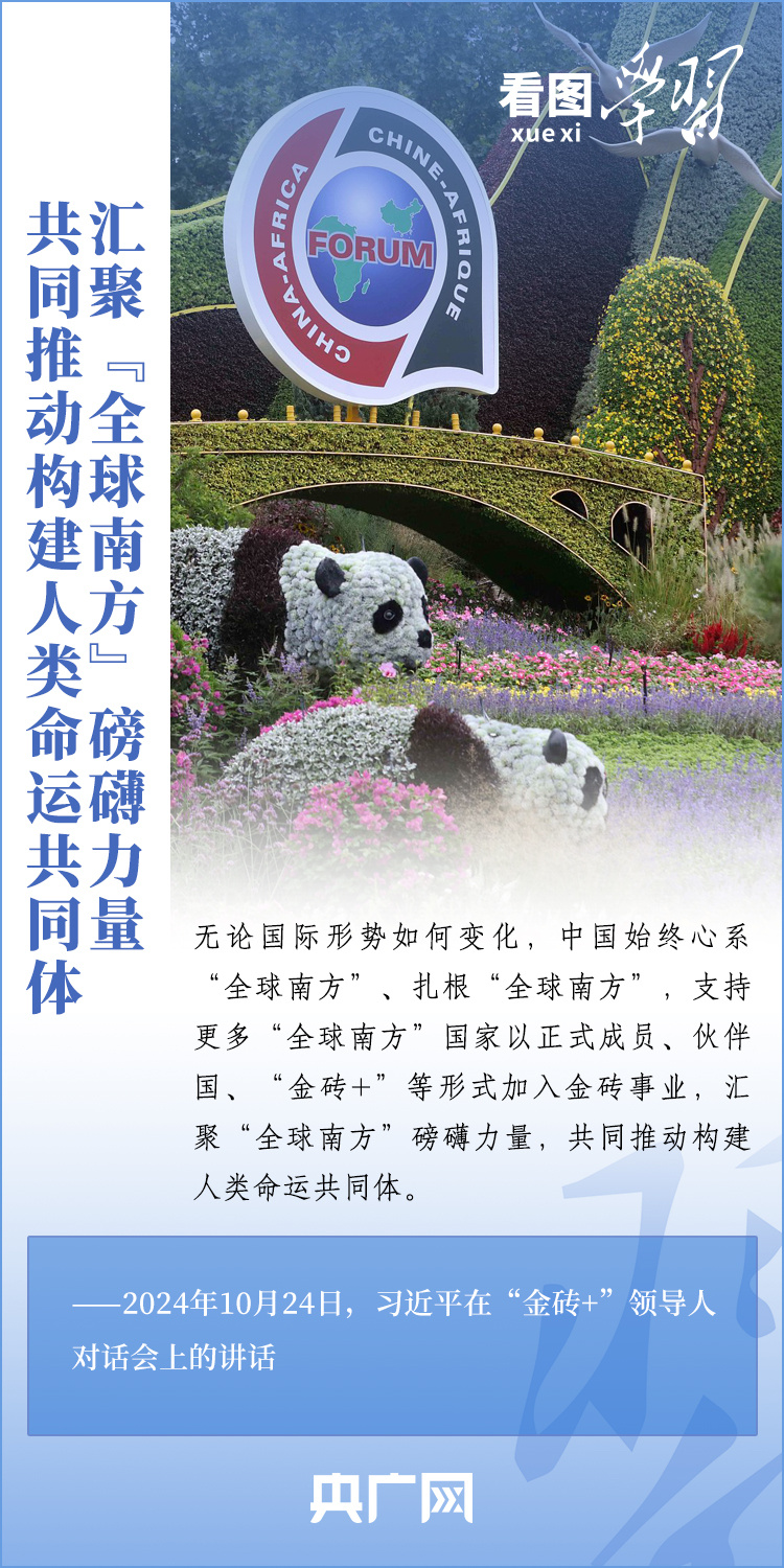 “‘全球南方’群體性崛起,是世界大變局的鮮明標志?!碑?shù)貢r間10月24日,國家主席習近平在俄羅斯喀山出席“金磚+”領(lǐng)導人對話會并發(fā)表重要講話。習主席深刻闡述了“全球南方”群體性崛起的重要意義,圍繞和平、發(fā)展、文明提出三方面務實舉措,呼吁與會“金磚+”領(lǐng)導人展現(xiàn)集體智慧和力量,匯聚“全球南方”磅礴力量,共同推動構(gòu)建人類命運共同體。一起來學習!
