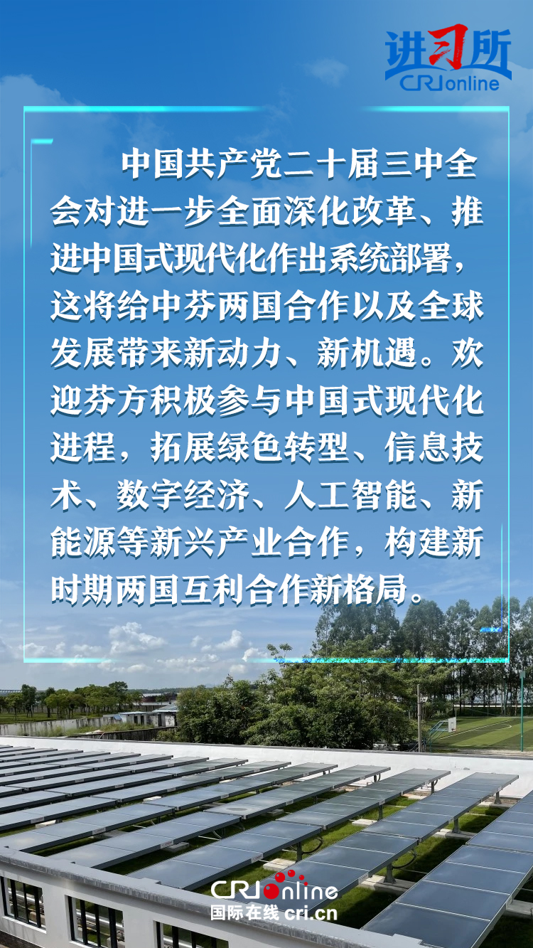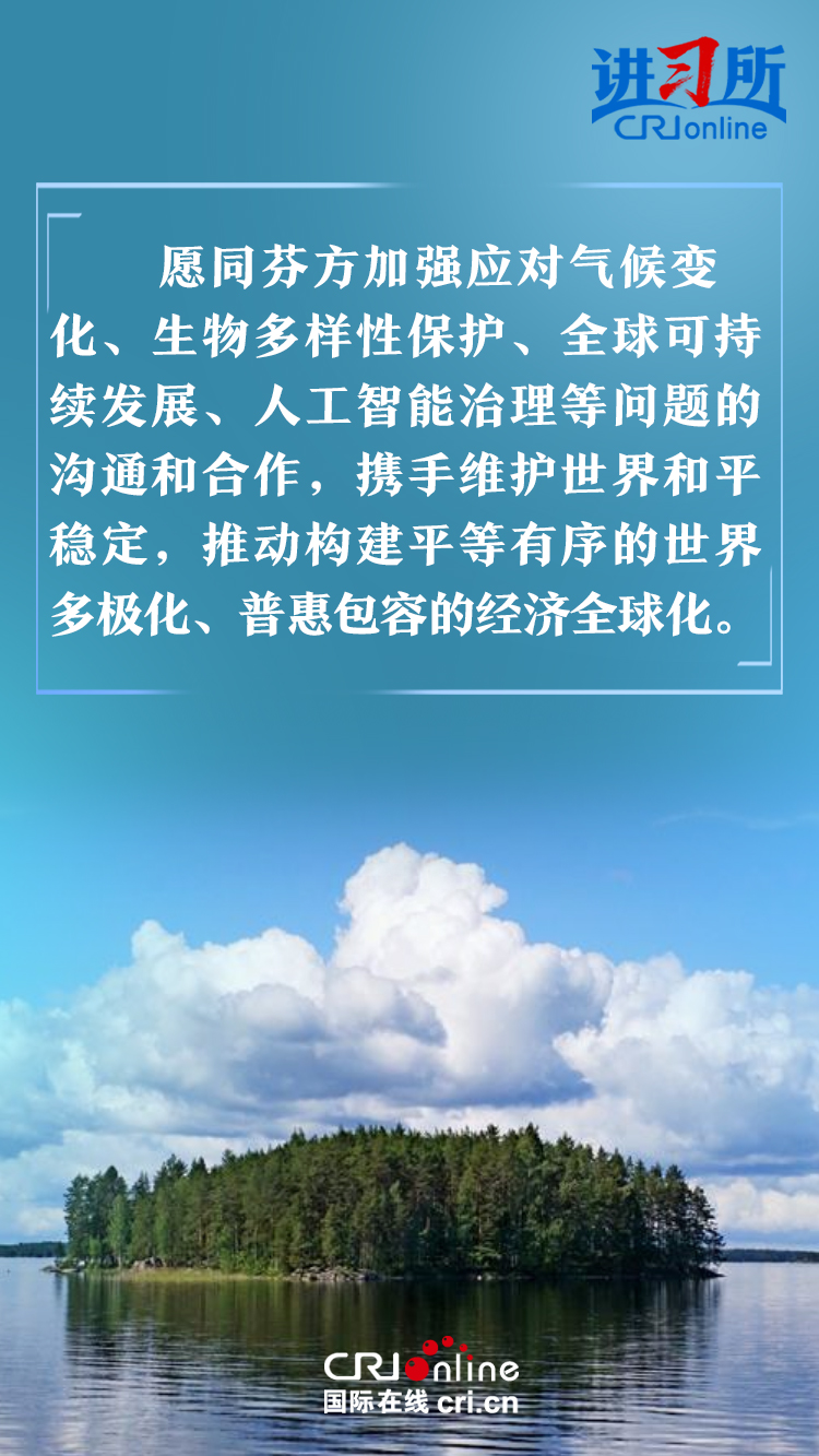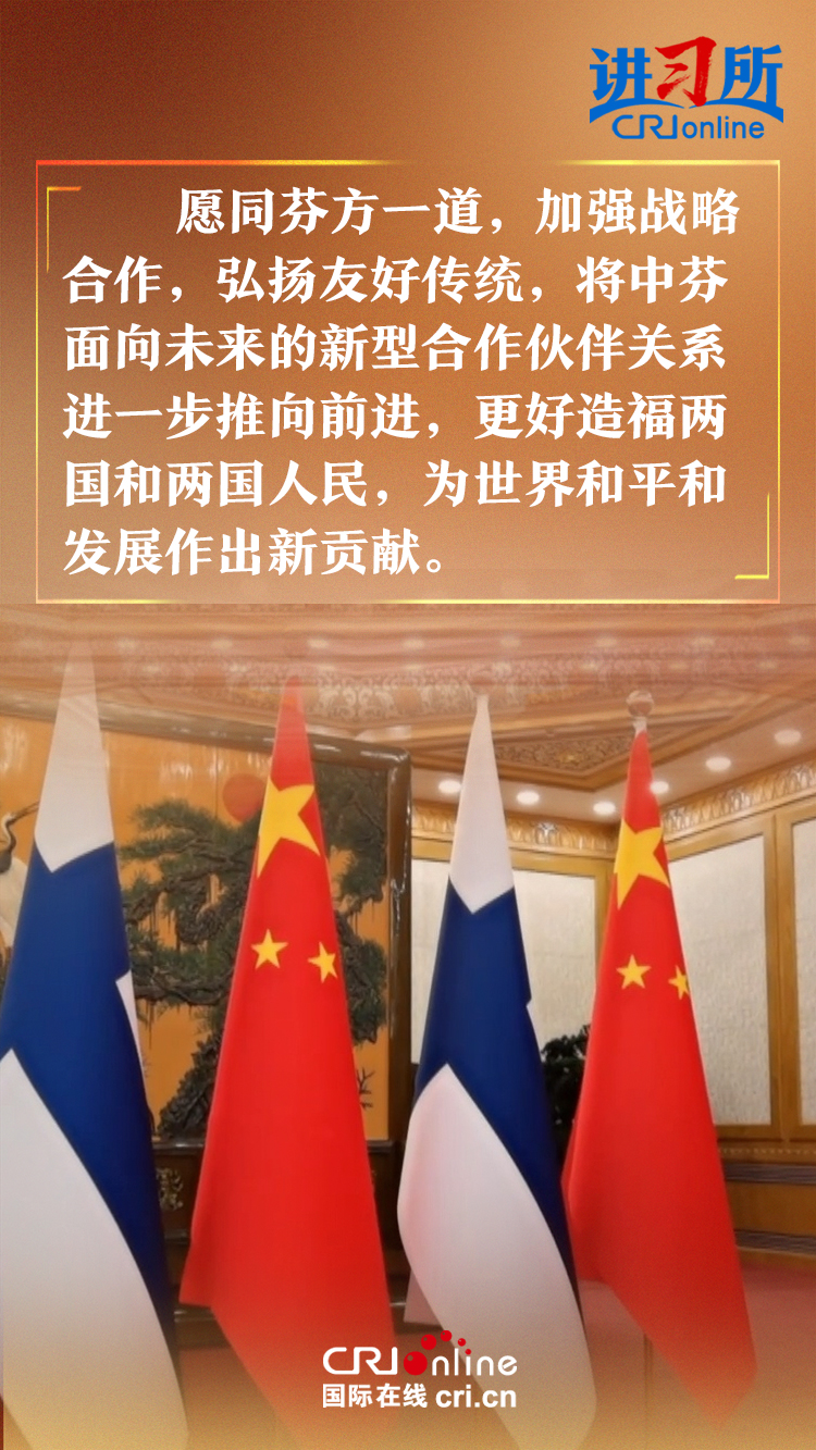 習近平指出,建交以來,中芬始終友好相處、互尊互信,樹立了國與國之間超越歷史、文化、制度差異,平等交往的典范。中方愿同芬方一道,加強戰(zhàn)略合作,弘揚友好傳統(tǒng),將中芬面向未來的新型合作伙伴關(guān)系進一步推向前進,更好造福兩國和兩國人民,為世界和平和發(fā)展作出新貢獻。