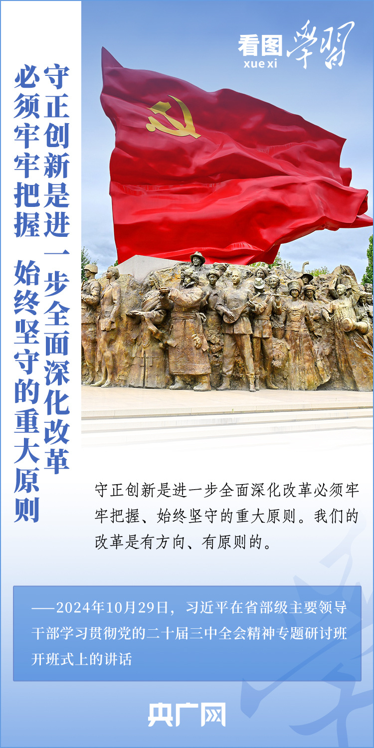 改革只有進(jìn)行時(shí),沒(méi)有完成時(shí)。10月29日,省部級(jí)主要領(lǐng)導(dǎo)干部學(xué)習(xí)貫徹黨的二十屆三中全會(huì)精神專題研討班在中央黨校(國(guó)家行政學(xué)院)開(kāi)班。習(xí)近平總書記發(fā)表重要講話,就進(jìn)一步全面深化改革的一系列重大問(wèn)題進(jìn)行深刻闡釋,強(qiáng)調(diào)要牢牢把握、始終堅(jiān)守“守正創(chuàng)新”這一重大原則,把握好“四對(duì)關(guān)系”,奮力打開(kāi)改革發(fā)展新天地。一起來(lái)學(xué)習(xí)!