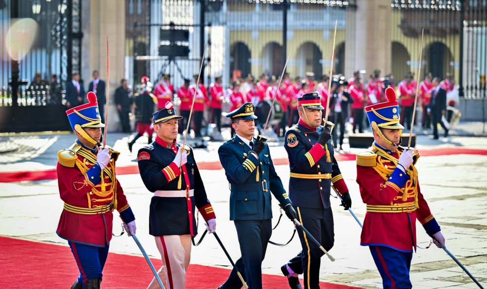 當(dāng)?shù)貢r(shí)間11月14日下午,國家主席習(xí)近平同秘魯總統(tǒng)博魯阿爾特舉行會(huì)談。在秘魯禮賓馬隊(duì)護(hù)衛(wèi)下,習(xí)近平乘車抵達(dá)總統(tǒng)府,受到博魯阿爾特總統(tǒng)熱情迎接。博魯阿爾特在總統(tǒng)府前廣場為習(xí)近平舉行隆重盛大歡迎儀式。