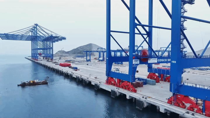 當(dāng)?shù)貢r(shí)間11月14日晚,習(xí)近平主席同博魯阿爾特總統(tǒng)在利馬總統(tǒng)府以視頻方式共同出席錢凱港開港儀式。