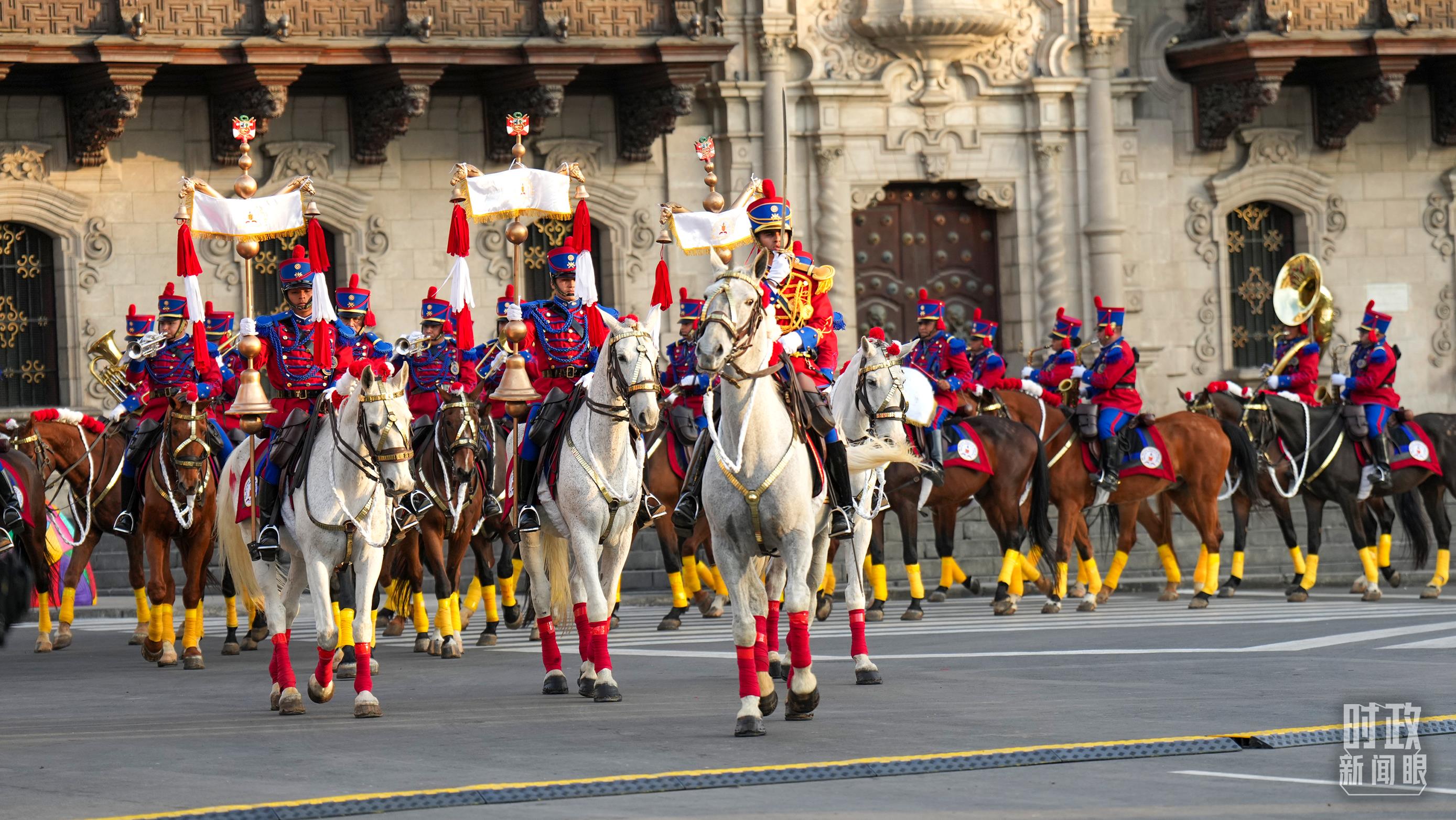 △歡迎儀式上的秘魯騎兵。(總臺(tái)記者李晉拍攝)