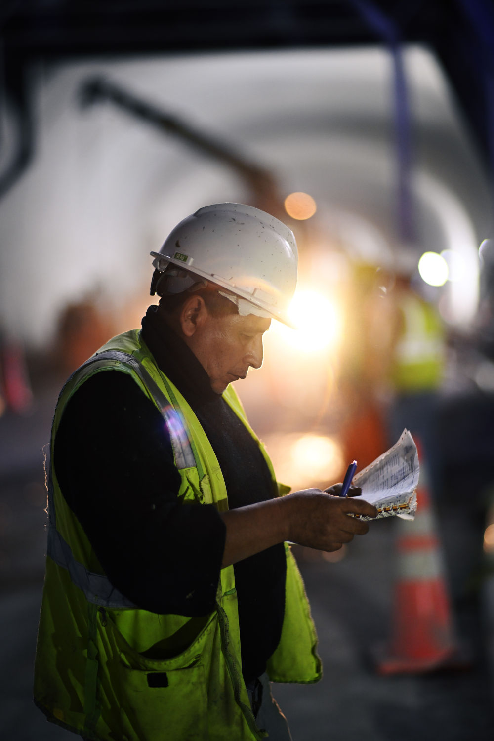 2024年10月8日,一名當(dāng)?shù)貑T工在秘魯錢凱隧道施工現(xiàn)場忙碌。