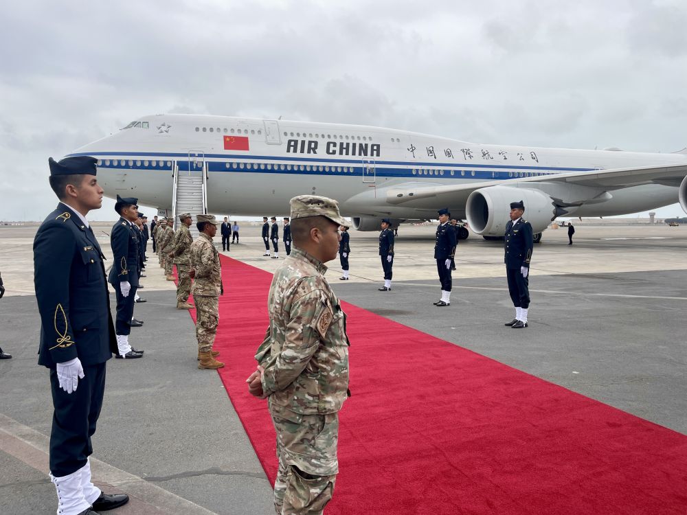 當地時間11月17日,國家主席習近平乘專機離開秘魯利馬。