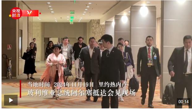 玻利維亞總統(tǒng)阿爾塞抵達會見現(xiàn)場