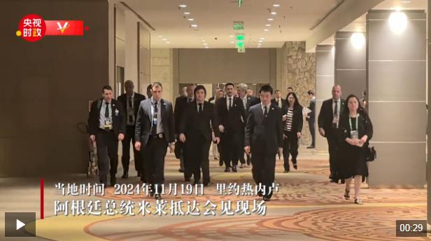 當地時間11月19日,國家主席習近平在里約熱內盧出席二十國集團領導人峰會期間會見阿根廷總統(tǒng)米萊。