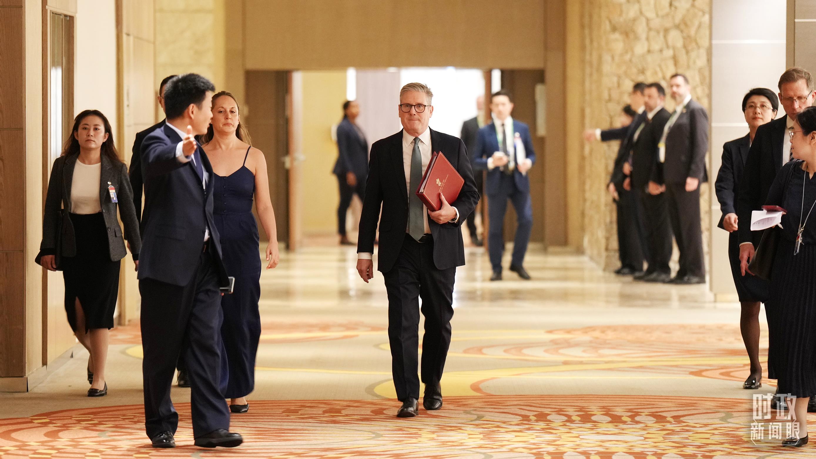 英國首相斯塔默抵達(dá)會(huì)見現(xiàn)場(chǎng)。(總臺(tái)記者李晉拍攝)
