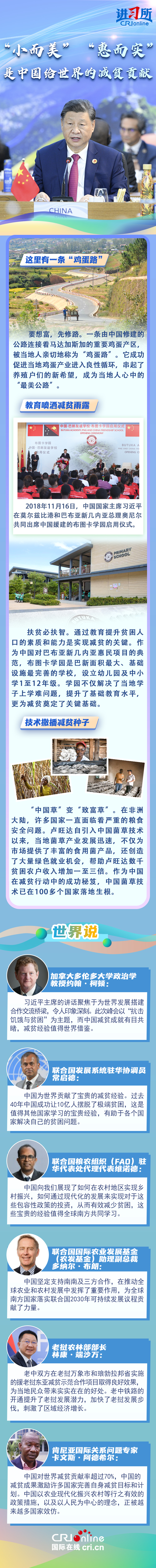 “世界繁榮穩(wěn)定不可能建立在貧者愈貧、富者愈富的基礎之上?!苯陙恚袊恢痹谟脤嶋H行動與世界分享脫貧經(jīng)驗:與東盟國家共同開展鄉(xiāng)村減貧推進計劃,在非洲開展基礎設施建設和農(nóng)業(yè)、醫(yī)療等技術(shù)合作援助項目,在拉美援建農(nóng)業(yè)技術(shù)中心......一批批“小而美”“惠而實”的民生項目落地生根,幫助當?shù)孛癖姅[脫貧困。多國人士表示,中國成功打贏脫貧攻堅戰(zhàn)具有世界意義,不僅為發(fā)展中國家提供了借鑒經(jīng)驗,更有助于推動建設一個共同發(fā)展的公正世界。