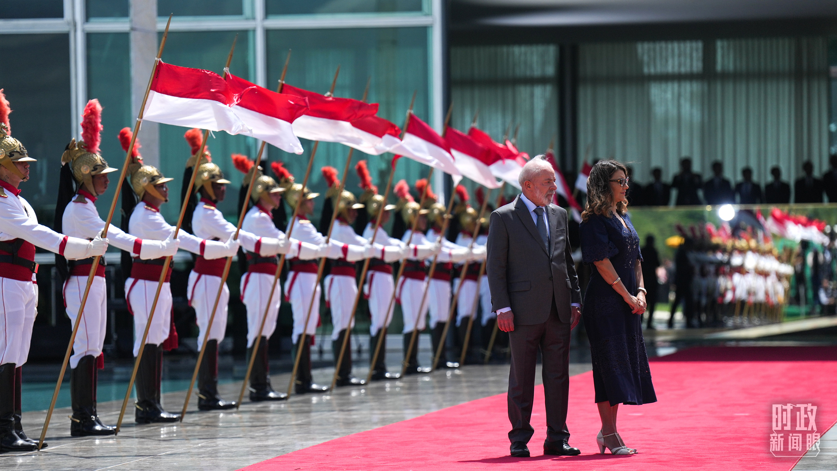 巴西總統(tǒng)盧拉和夫人羅桑等候習(xí)主席到來。