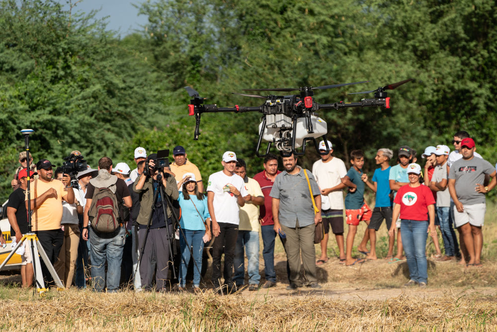 2024年2月2日,在巴西阿波迪,人們觀(guān)看一款中國(guó)生產(chǎn)的農(nóng)用無(wú)人機(jī)。當(dāng)日,中巴農(nóng)業(yè)機(jī)械化合作示范項(xiàng)目啟動(dòng)儀式在巴西阿波迪舉行,第一批來(lái)自中國(guó)7家農(nóng)機(jī)企業(yè)共31臺(tái)(件)設(shè)備正式交付給巴西農(nóng)村勞動(dòng)者組織。新華社記者 王天聰 攝