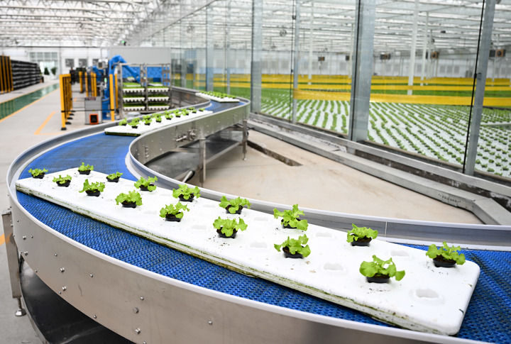 2024年12月12日在內蒙古鄂爾多斯市達拉特旗內蒙古現(xiàn)代數(shù)字農業(yè)科技產業(yè)園拍攝的生菜苗。新華社記者 貝赫 攝