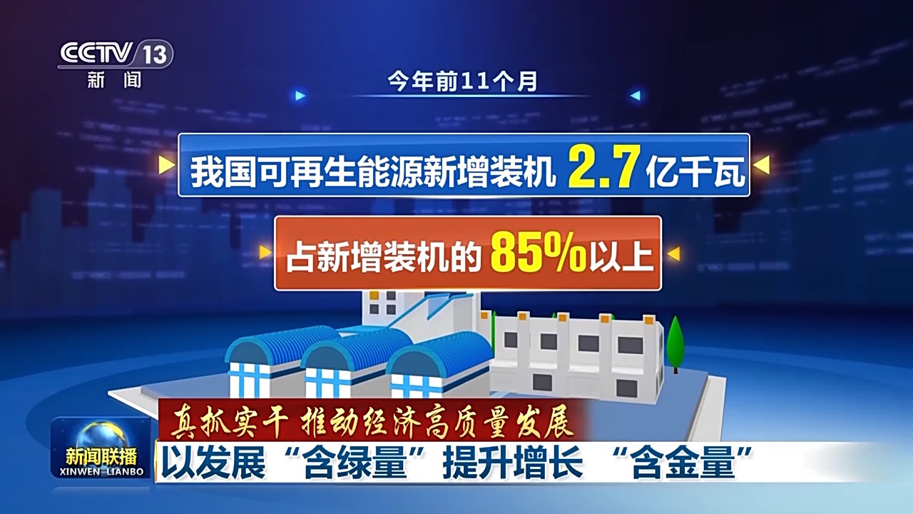 中國(guó)電力企業(yè)聯(lián)合會(huì)的最新數(shù)據(jù)顯示,今年前11個(gè)月,我國(guó)可再生能源新增裝機(jī)2.7億千瓦,占新增裝機(jī)的85%以上;到11月底,我國(guó)風(fēng)電和太陽(yáng)能發(fā)電裝機(jī)占比首次超過四成,裝機(jī)規(guī)模已超過煤電,提前6年多完成我國(guó)在氣候雄心峰會(huì)上對(duì)世界的承諾。
