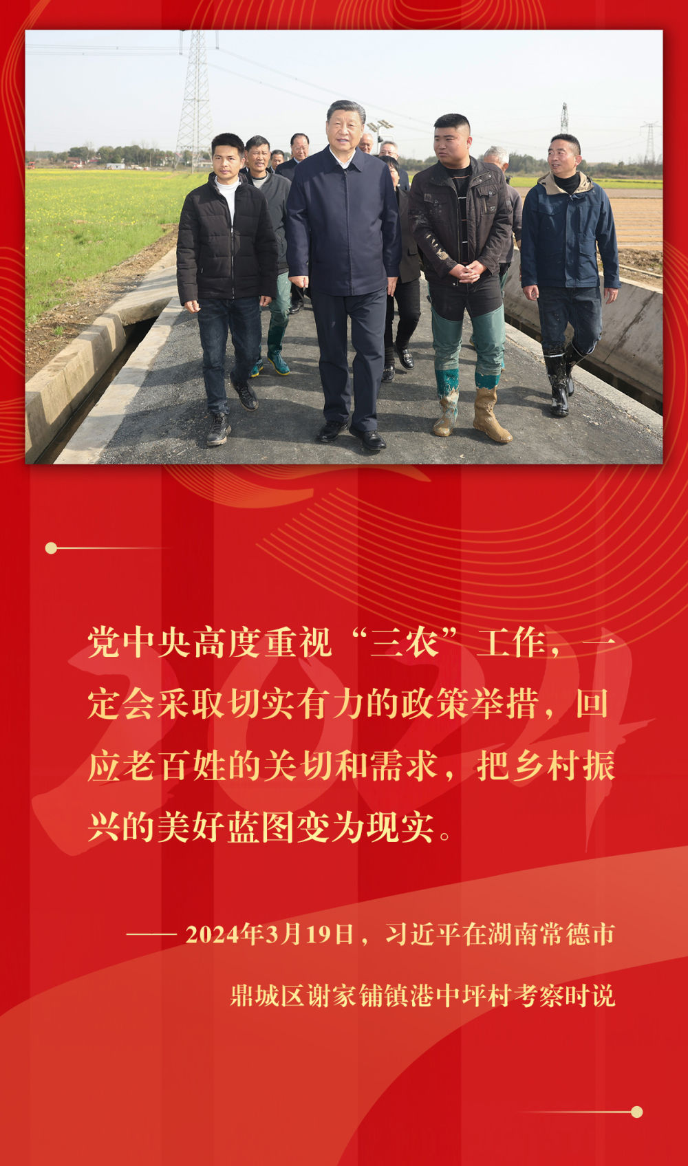 堅持城鄉(xiāng)融合發(fā)展、持續(xù)深化農(nóng)村改革、支持強(qiáng)農(nóng)惠農(nóng)富農(nóng)、拓寬農(nóng)民增收渠道、強(qiáng)化農(nóng)業(yè)科技和裝備支撐、確保糧食和重要農(nóng)產(chǎn)品穩(wěn)產(chǎn)保供……2024年,習(xí)近平總書記在基層考察期間,持續(xù)關(guān)注鄉(xiāng)村振興,多次提出重要指示,落子關(guān)鍵處、科學(xué)謀布局,千方百計推動農(nóng)業(yè)增效益、農(nóng)村增活力、農(nóng)民增收入。