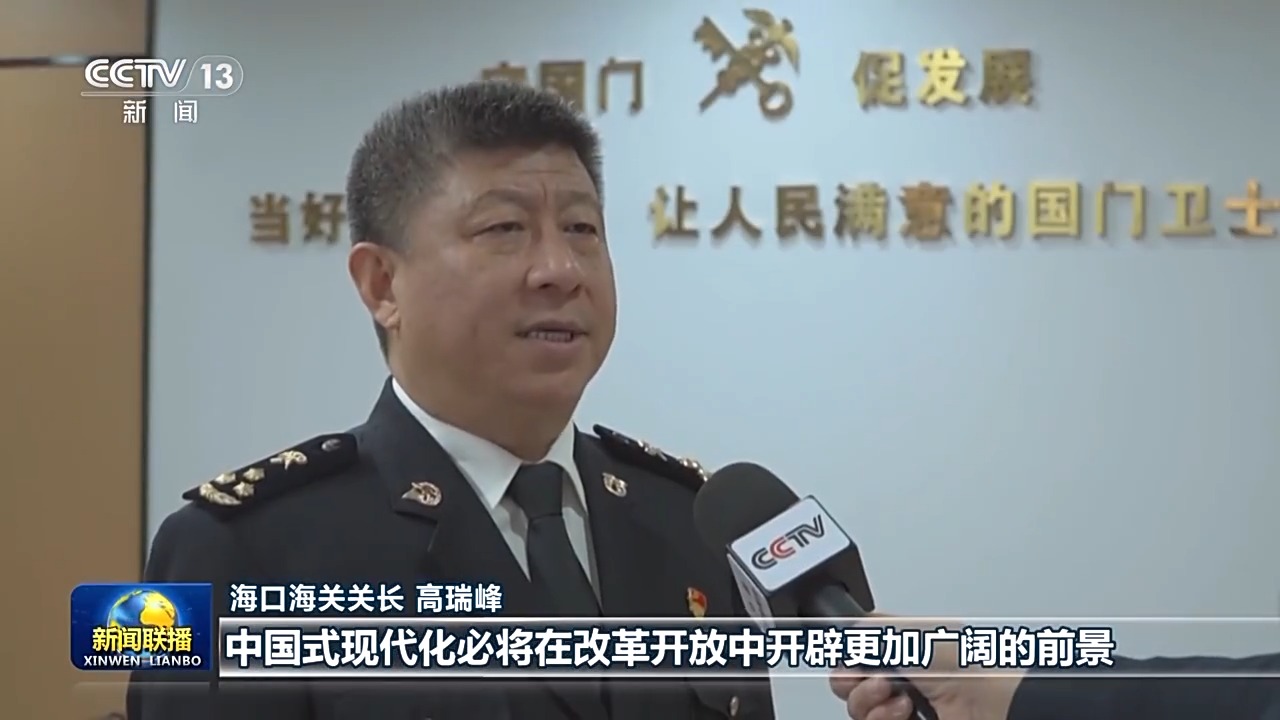 ??诤jP(guān)關(guān)長(zhǎng) 高瑞峰:習(xí)近平主席在新年賀詞中指出,中國(guó)式現(xiàn)代化必將在改革開(kāi)放中開(kāi)辟更加廣闊的前景。今年,海南自貿(mào)港將實(shí)現(xiàn)封關(guān)運(yùn)作。我們要始終沿著習(xí)近平總書(shū)記指引的方向前進(jìn),不斷深化海關(guān)監(jiān)管制度集成創(chuàng)新,努力把海南自由貿(mào)易港打造成為引領(lǐng)我國(guó)新時(shí)代對(duì)外開(kāi)放的重要門戶。