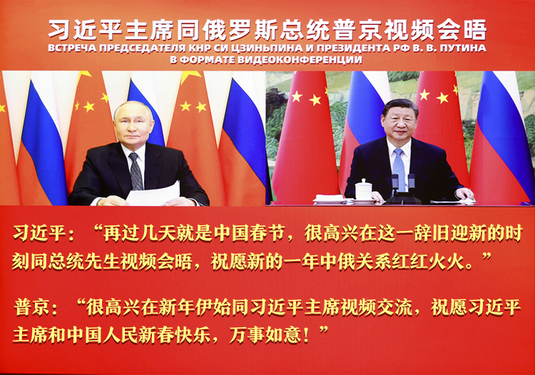 1月21日,中國國家主席習(xí)近平在北京同俄羅斯總統(tǒng)普京舉行視頻會晤,兩國元首互致新年祝福。習(xí)近平強(qiáng)調(diào),新的一年,我愿同總統(tǒng)先生一道,繼續(xù)引領(lǐng)中俄關(guān)系登高望遠(yuǎn),以中俄關(guān)系的穩(wěn)定性和堅(jiān)韌性應(yīng)對外部環(huán)境的不確定性,共同促進(jìn)兩國發(fā)展振興,維護(hù)國際公平正義。