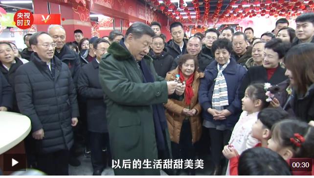 23日上午,正在遼寧考察的習近平總書記來到沈陽大東副食品商場,了解節(jié)日期間市場供應情況。孩子們見到習爺爺十分高興,熱情地給習爺爺遞上新買的糖果。習近平接下糖果,親切地說,你們的糖我收下,吃了你們的糖心里很甜,希望你們的生活像糖果一樣甜甜美美。