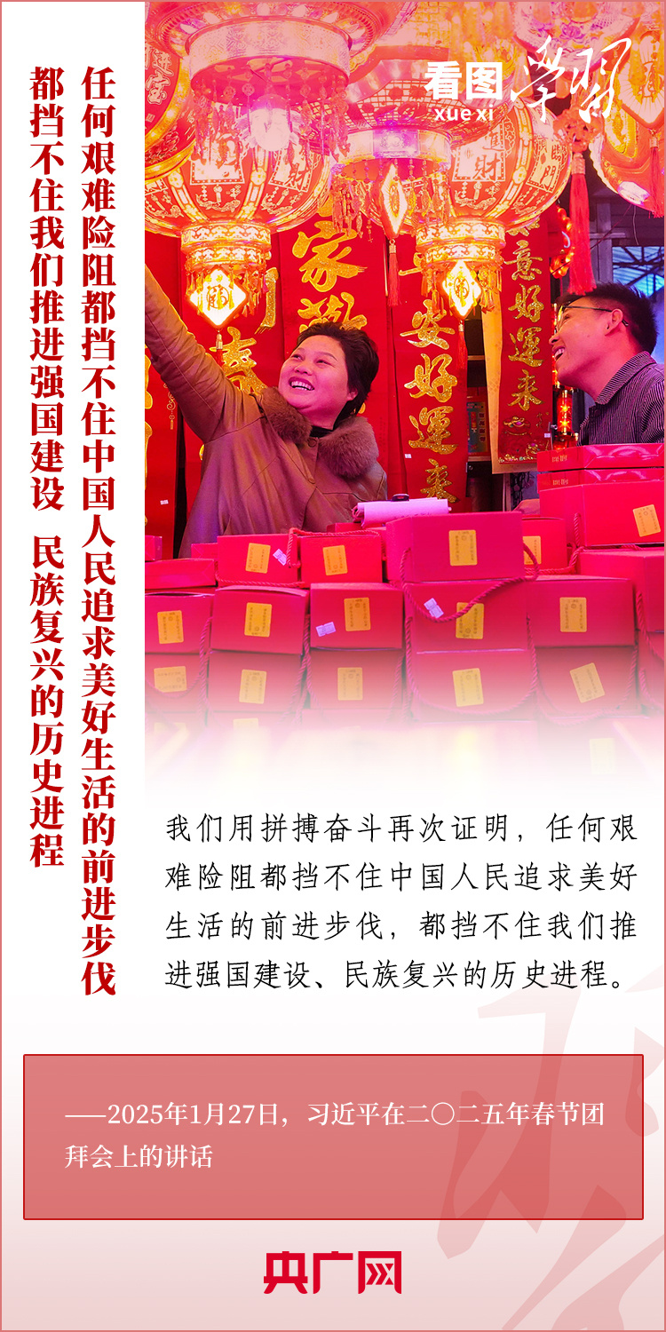 1月27日,中共中央、國務(wù)院在北京舉行春節(jié)團(tuán)拜會,習(xí)近平總書記發(fā)表熱情洋溢的講話,向全國各族人民、港澳臺同胞、海外僑胞拜年并致以新春祝福??倳浽谥v話中深情回顧過去一年中國式現(xiàn)代化取得很不平凡的發(fā)展歷程,“希望全國各族人民以蛇行千里的勁頭,堅定信心、滿懷希望,開拓進(jìn)取、頑強奮斗,共同書寫中國式現(xiàn)代化新篇章?!币黄饋韺W(xué)習(xí)!