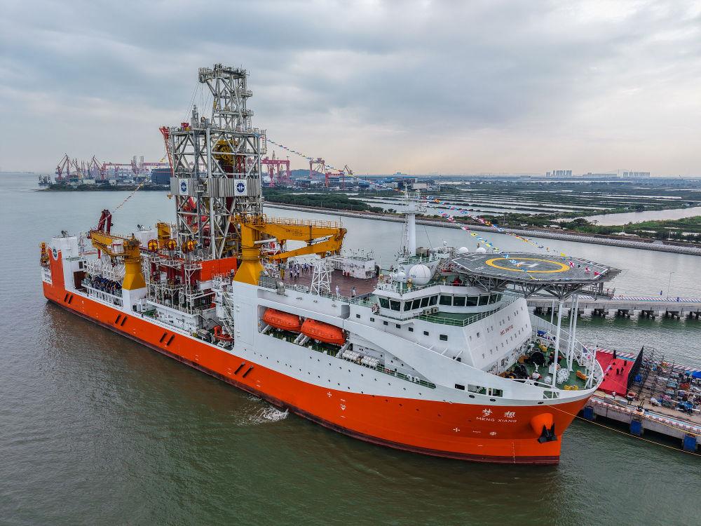 △2024年11月17日,靠泊在廣州海洋地質調查局科考碼頭的我國自主設計建造的首艘大洋鉆探船夢想號。