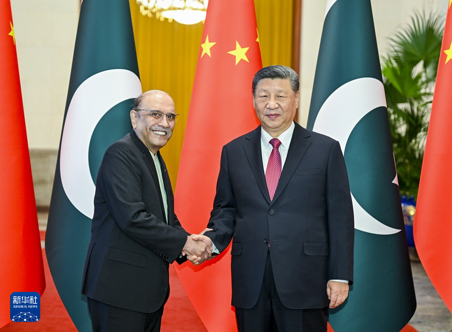 2月5日下午,國(guó)家主席習(xí)近平在北京人民大會(huì)堂同來(lái)華進(jìn)行國(guó)事訪問(wèn)的巴基斯坦總統(tǒng)扎爾達(dá)里舉行會(huì)談。這是習(xí)近平同扎爾達(dá)里握手。新華社記者 李學(xué)仁 攝