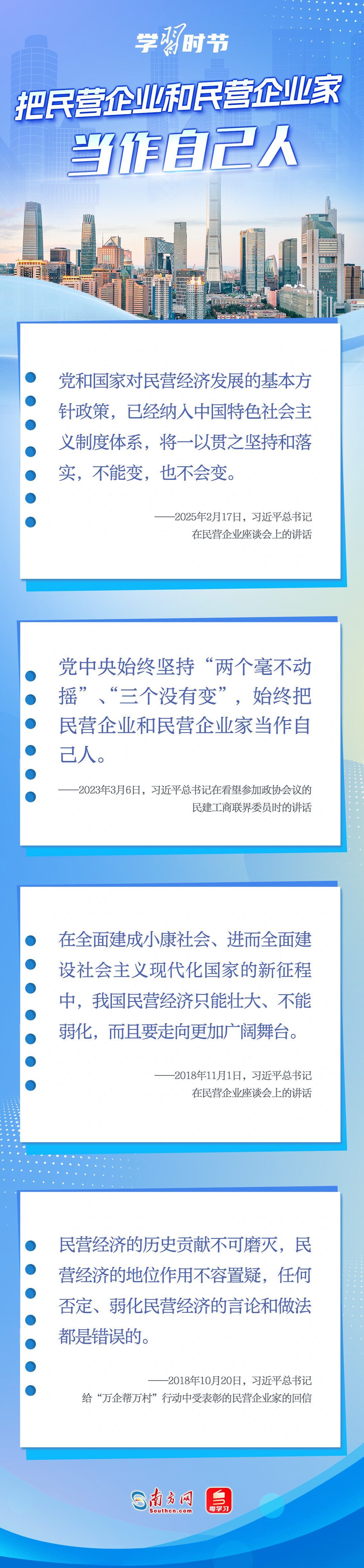2月17日,習(xí)近平總書(shū)記在出席民營(yíng)企業(yè)座談會(huì)時(shí)強(qiáng)調(diào),黨和國(guó)家對(duì)民營(yíng)經(jīng)濟(jì)發(fā)展的基本方針政策,已經(jīng)納入中國(guó)特色社會(huì)主義制度體系,將一以貫之堅(jiān)持和落實(shí),不能變,也不會(huì)變。
