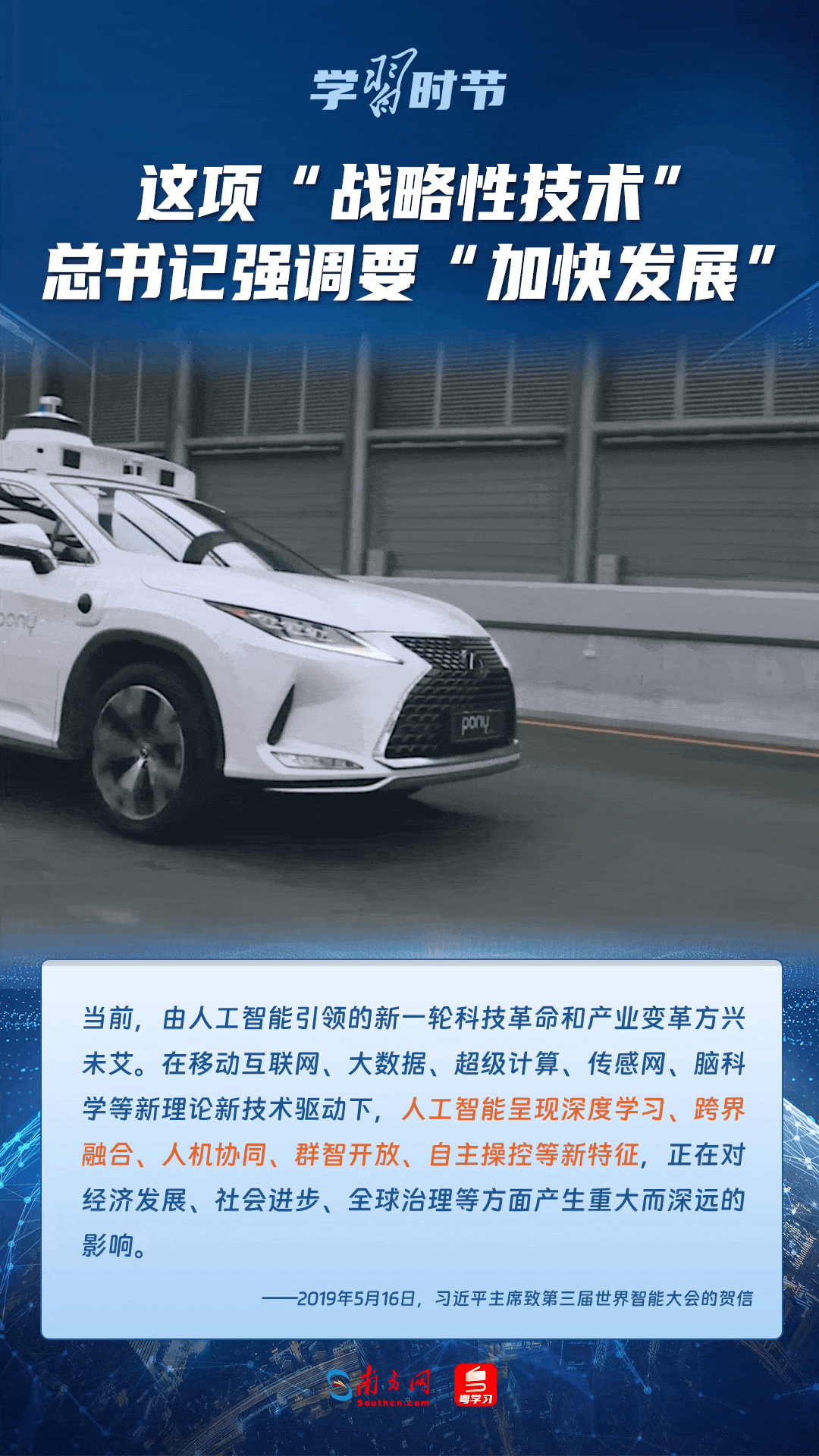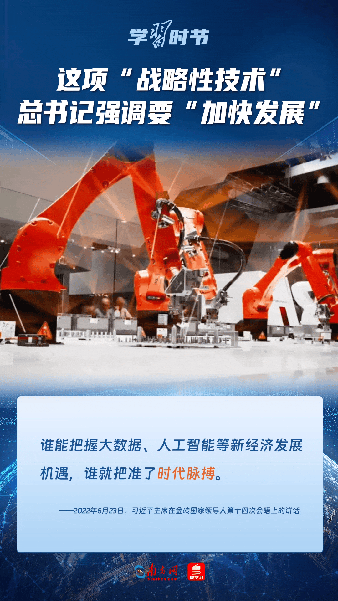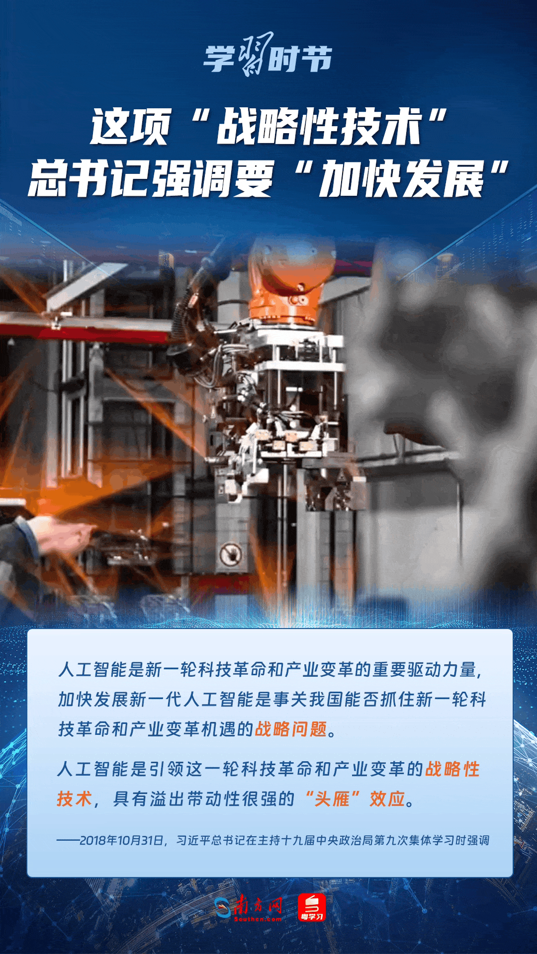 人工智能是引領(lǐng)科技革命和產(chǎn)業(yè)變革的戰(zhàn)略性技術(shù)。黨的十八大以來,習近平總書記把創(chuàng)新擺在國家發(fā)展全局的核心位置,高度重視人工智能發(fā)展,多次談及這項“戰(zhàn)略性技術(shù)”,強調(diào)要“加快發(fā)展”,為人工智能賦能千行百業(yè)指明方向。讓我們一起來學習總書記關(guān)于人工智能的重要論述!