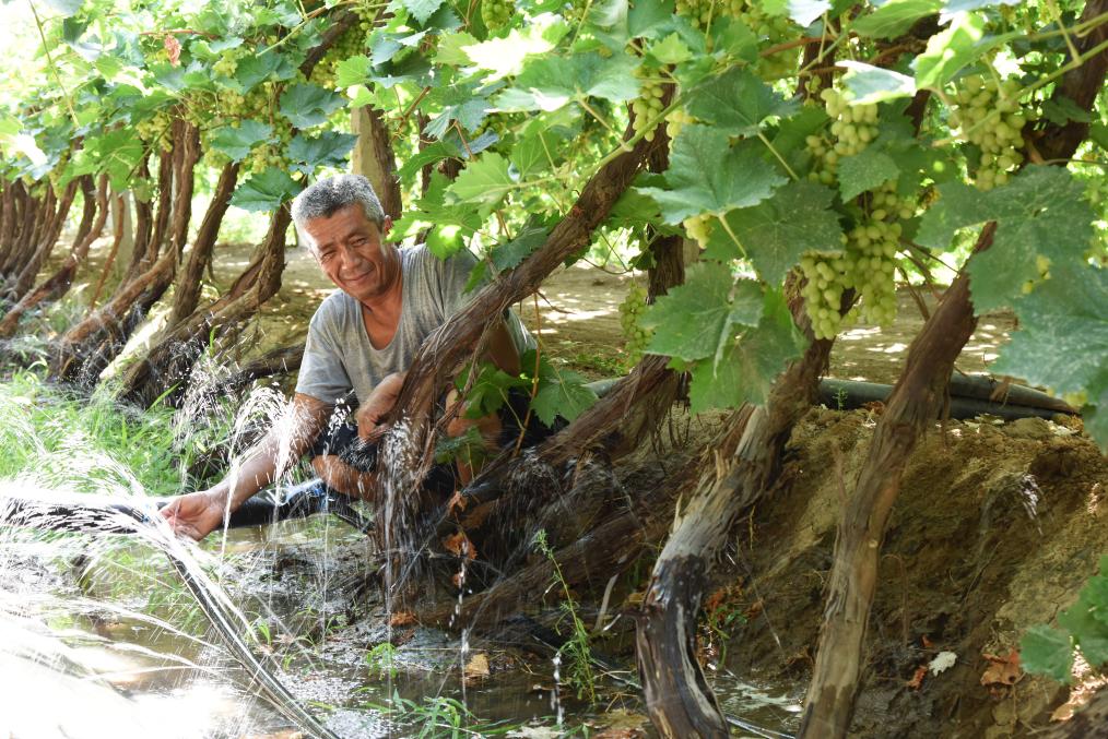 “以前種葡萄20天澆一次水,一年澆十一二次用水900方;現(xiàn)在10天澆一次,一年澆十八次用水700方,9畝地一年能省500塊水費哩!”春暖花開,新疆吐魯番鄯善縣果農(nóng)阿不力孜·阿不都熱衣木先花幾天時間把埋了一冬天的藤蔓上架,準(zhǔn)備再用幾天把用于灌溉的微噴帶鋪設(shè)到位。