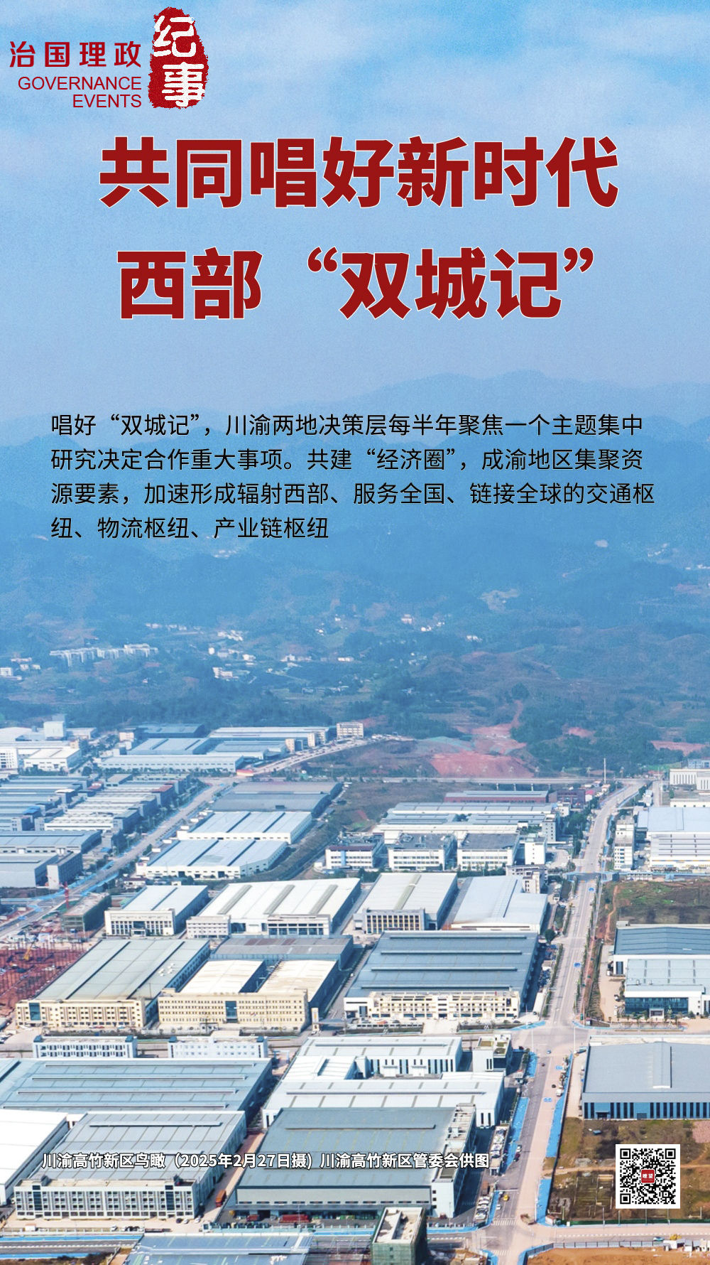 2023年7月,習(xí)近平總書(shū)記在四川考察時(shí)強(qiáng)調(diào),要堅(jiān)持“川渝一盤棋”,加強(qiáng)成渝區(qū)域協(xié)同發(fā)展,構(gòu)筑向西開(kāi)放戰(zhàn)略高地和參與國(guó)際競(jìng)爭(zhēng)新基地,盡快成為帶動(dòng)西部高質(zhì)量發(fā)展的重要增長(zhǎng)極和新的動(dòng)力源。