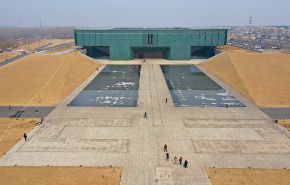 “商邑翼翼,四方之極。”位于太行山東麓的河南安陽小屯村一帶,是殷墟遺址所在地。三千多年前,繁盛的城市文明、舉世矚目的文字文明以及高度發(fā)展的手工業(yè)等,共同構筑了早期中國的華彩篇章。2024年2月,殷墟博物館新館正式開館,成為首個全景式展現(xiàn)商文明的國家重大考古專題博物館(2025年2月21日攝,無人機照片)。