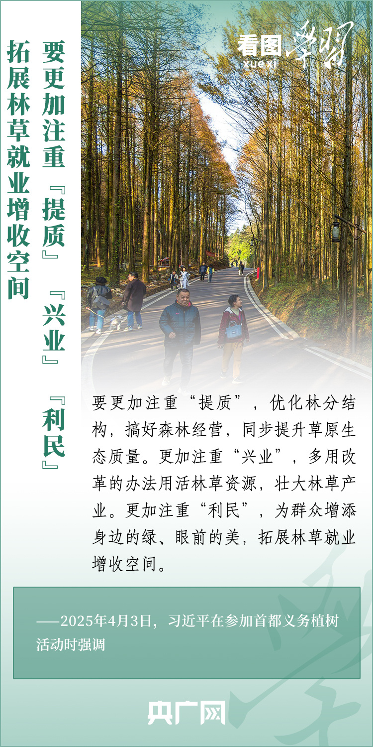 植樹造林是生態(tài)文明建設(shè)重要一環(huán)。4月3日,習(xí)近平總書記參加首都義務(wù)植樹活動(dòng)。在植樹現(xiàn)場(chǎng),總書記高度肯定國(guó)土綠化工作取得來之不易的成績(jī),強(qiáng)調(diào)綠化祖國(guó)必須堅(jiān)持“三綠”并舉、“四庫”聯(lián)動(dòng),要更加注重“提質(zhì)”“興業(yè)”“利民”,“匯聚共建美麗中國(guó)的磅礴力量,讓祖國(guó)大地更加綠意盎然、生機(jī)勃發(fā)”。一起來學(xué)習(xí)!