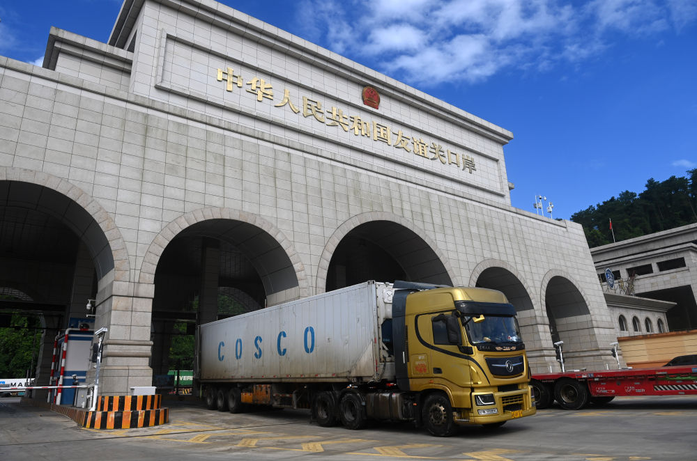 2024年8月26日,一輛貨車通過廣西憑祥友誼關(guān)口岸。友誼關(guān)口岸是西部陸海新通道的重要節(jié)點,是中國通往東盟最大的陸路口岸,也是我國通往越南最便捷的陸路大通道之一。滿載著東盟國家特色水果、農(nóng)副產(chǎn)品與中國電子配件、大型設備等貨品的車輛在此“雙向奔赴”、川流不息。2024年,友誼關(guān)口岸年內(nèi)出入境貨車數(shù)量首次突破50萬輛次,同比增長15.96%,創(chuàng)歷史新高。