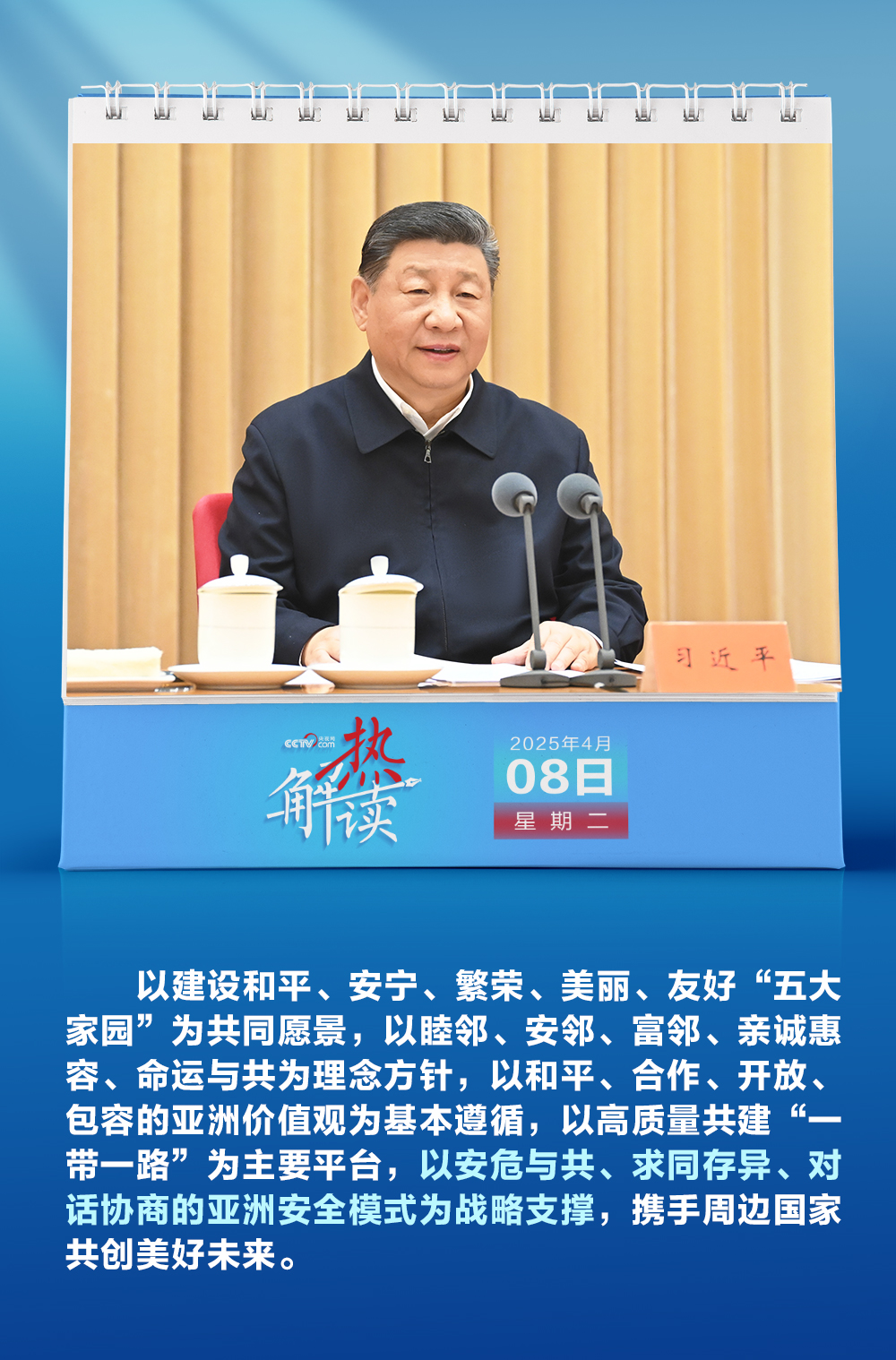 4月8日至9日,中央周邊工作會(huì)議在北京舉行,中共中央總書(shū)記、國(guó)家主席、中央軍委主席習(xí)近平出席并發(fā)表重要講話(huà)。此次會(huì)議對(duì)我國(guó)未來(lái)周邊工作作出重要部署,并首次提出“亞洲安全模式”。