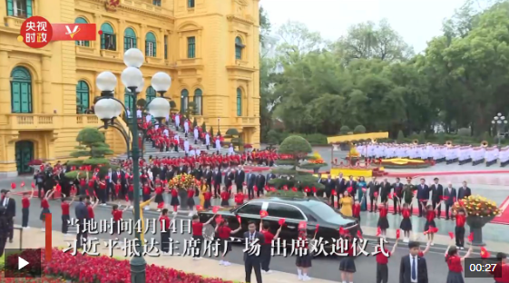 4月14日,中共中央總書(shū)記、國(guó)家主席習(xí)近平抵達(dá)河內(nèi)對(duì)越南進(jìn)行國(guó)事訪(fǎng)問(wèn)。當(dāng)日下午,越共中央總書(shū)記蘇林為習(xí)近平舉行隆重歡迎儀式。