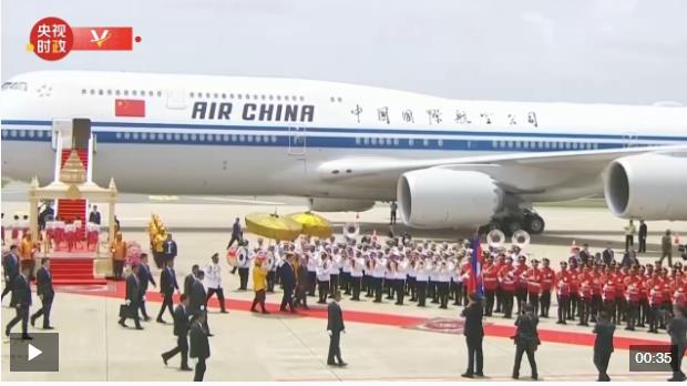 當?shù)貢r間4月17日上午,國家主席習近平在柬埔寨國王西哈莫尼的陪同下檢閱柬埔寨儀仗隊。