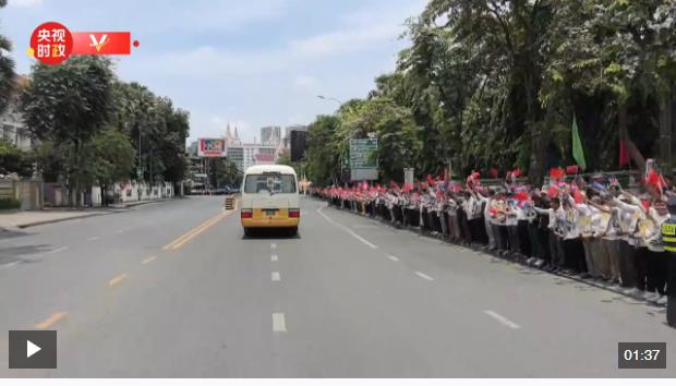 當?shù)貢r間4月17日上午,國家主席習近平抵達柬埔寨首都金邊。總臺隨團時政記者跟隨車隊獨家記錄金邊萬人歡迎盛況。