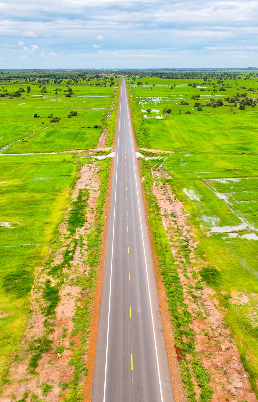 這是2024年7月14日在柬埔寨特本克蒙省拍攝的71C號國家公路(無人機(jī)照片)。新華社發(fā)(尼多拉攝)