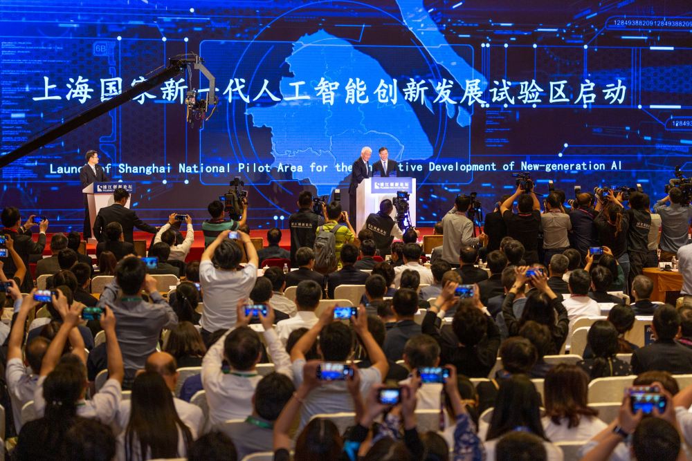 在上海舉行的2019浦江創(chuàng)新論壇全體大會上,科技部與上海市政府共同啟動上海國家新一代人工智能創(chuàng)新發(fā)展試驗區(qū)建設(shè)(2019年5月25日攝)。