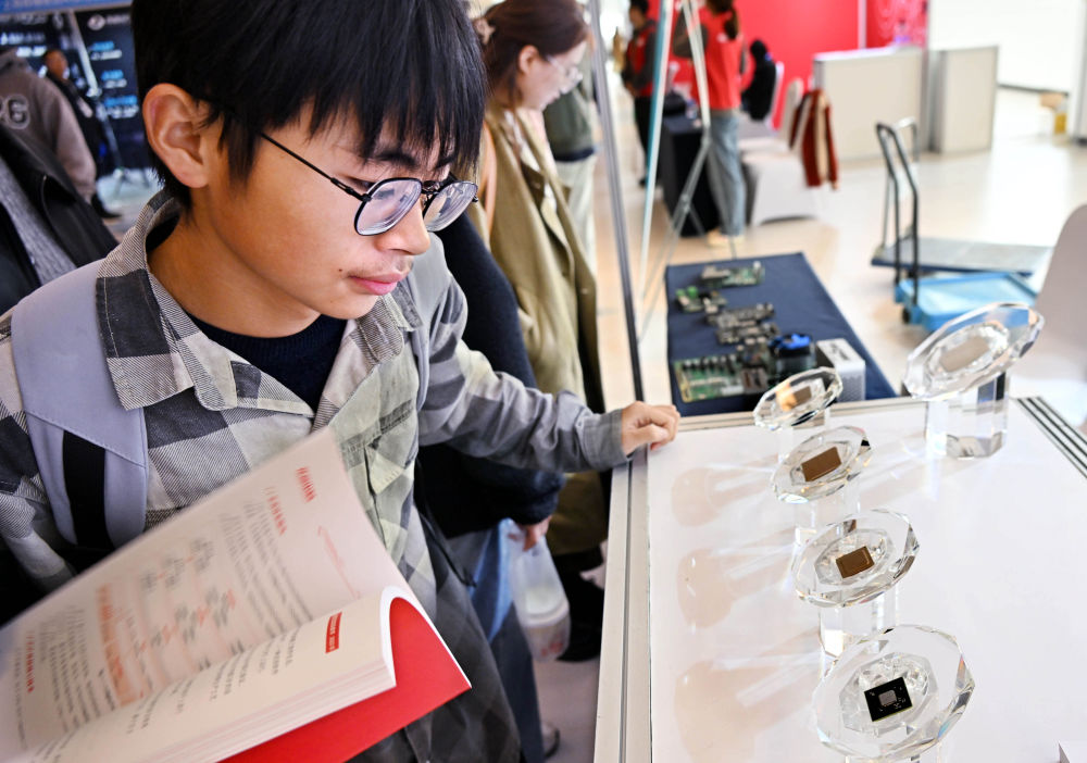 2024年11月2日,與會者在2024中國自動化大會展覽區(qū)觀看國產(chǎn)芯片。當日,2024中國自動化大會在山東省青島市開幕。大會以“新質(zhì)發(fā)展 智控未來”為主題,聚焦自動化與人工智能深度融合,探討新產(chǎn)業(yè)、新技術(shù)的創(chuàng)新發(fā)展。